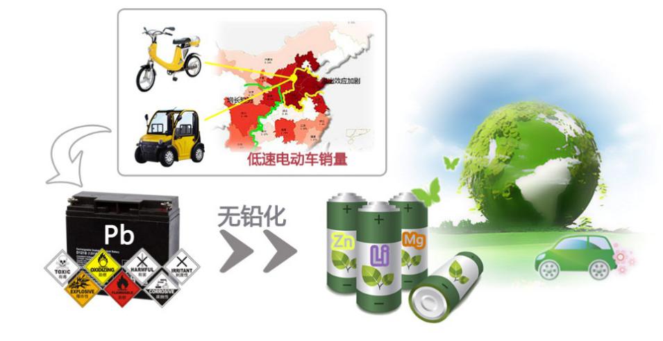 近年來,價格低廉且使用費用極低的低速電動車(≤ 70 km/h)極大便利了百姓的出行,豐富和滿足了廣大群眾的物質生活。其價格親民使用方便備受三線和四線城鎮居民歡迎,2015年銷量破七十萬,2016年高速增長銷量突破100萬。然而,大多數低速電動車使用的是鉛酸蓄電池作為動力,鉛酸蓄電池具有顯著的成本優勢,但是環境污染嚴重,已經不符合國家提出的“生態文明”社會建設的要求。據不完全統計,目前鉛回收率不到30%,每年產生的廢鉛超過260萬噸,嚴重污染水源和土壤,引起人體血鉛超標。因此,低速電動車的無鉛化綠色發展已迫在眉睫。依托青島能源所建設的青島儲能技術研究院在2012年建院之初,根據產業的迫切需求,把低速電動車的無鉛化作為主要工作目標,創新性地提出了低成本鋰離子電池技術、低成本水系鋅電池技術和新型鎂電池技術的三種解決方案,部署了五十多人的技術團隊進行技術攻關,取得階段性進展。
