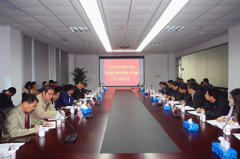 本次會議由陳成剛處長和山東省合成生物學重點實驗室(籌)主任李盛英研究員主持。李盛英研究員就合成生物學核心理念、發展現狀及應用前景等做了題為“合成微生物細胞工廠的設計與構建”的總體匯報,青島能源所呂雪峰研究員、山東大學張友明教授和齊魯工業大學王瑞明等人分別就“基于CO2高效利用的光合生物制造”、“構建兼具生物固氮和殺蟲抑菌功能的高效細胞工廠”及“10-HDA性質與生物合成”等方向做了專題報告。與會專家及企業代表圍繞合成生物學在醫藥、化工、能源、新材料、環境治理等領域的應用,就開展能源與材料合成生物學技術、醫藥合成生物學技術、農業合成生物學技術等方向進行了交流與研討,探討了合成生物學領域的關鍵科學和技術瓶頸問題,以及促進全省合成生物學相關學科的發展途徑。同時圍繞促進山東省合成生物學發展的組織模式、產業導向、方向部署等方面進行了熱烈的討論交流。