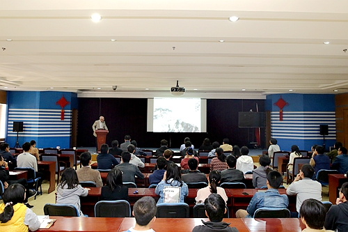 Langmuir教授從宇宙大爆炸、銀河系、太陽系的形成開始講述我們所居住的行星——地球的演化過程,用簡潔、精煉的語言從C、H、O和能量之間的化學與生物化學反應的角度生動地描繪了地球上的大氣、水、碳水化合物、微生物、動植物以及人類的形成和發展,闡明了物種的演化特別是人類文明的快速發展與能源消耗的關系,呼吁全球關注地球氣候變化與生物能源日漸枯竭的嚴峻形勢,重視可持續性發展的長遠意義。報告結束后,Langmuir教授與在座科研人員和研究生進行了深入的探討與交流,現場氛圍熱烈、活躍。