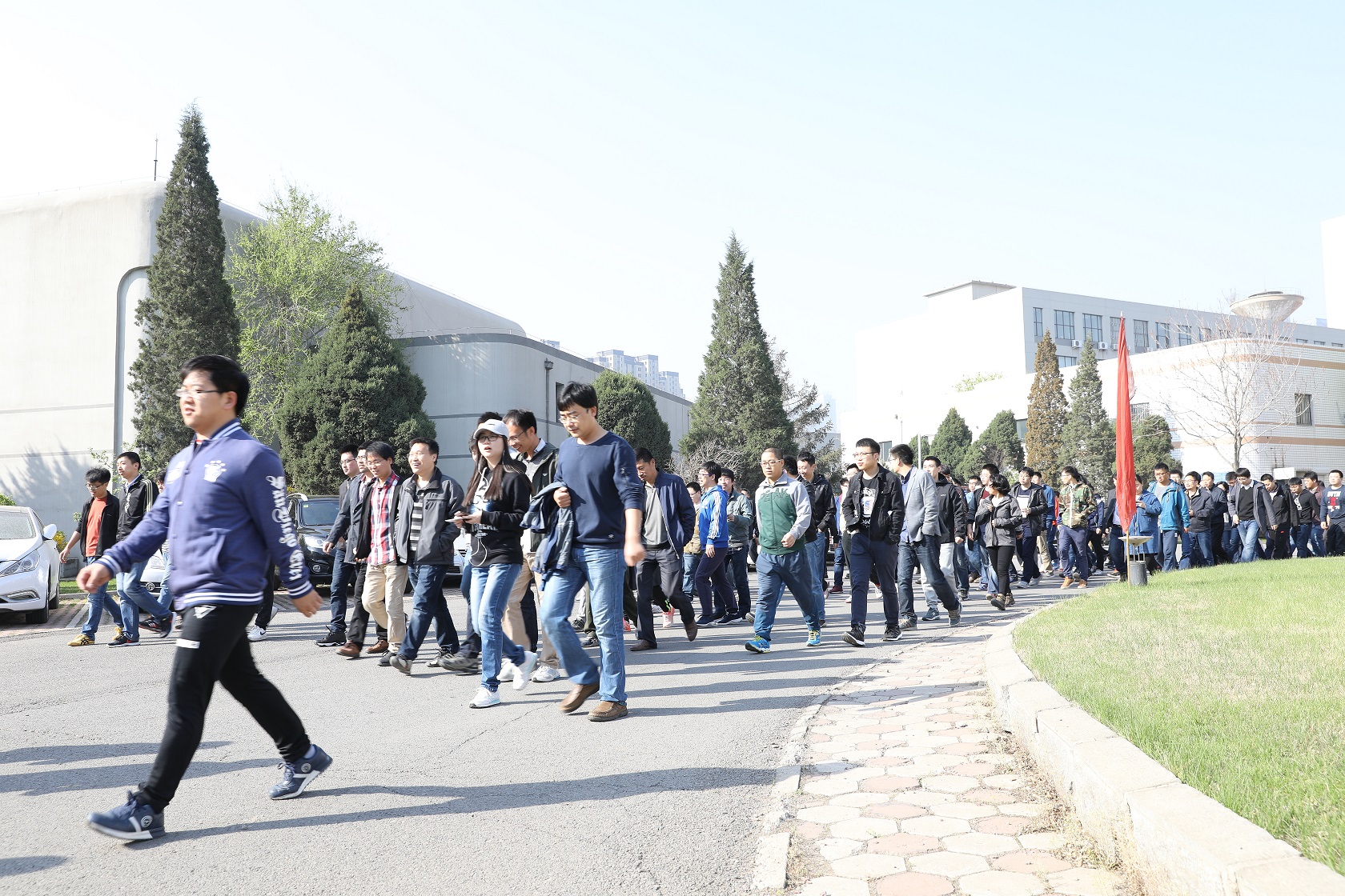此次活動旨在倡導健康理念,提高職工的健康意識,增強職工的身體素質。沈陽自動化所綜合辦公室主任王明輝作了活動前的動員講話。副所長、工會主席孫雷宣布“2017年沈陽自動化所春季徒步走活動”正式開始,并發令鳴槍。活動路線從研究所開始,途經南塔街、文萃路,抵達沈陽教育學院室外體育場,圍繞田徑跑道徒步行走10圈,再原路返回,全程長約5公里。