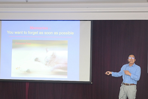 報告會上,王院士用淺顯易懂的語言生動的講述了記憶的形成、維持和消退的細胞分子機制。通過報告,大家了解到大腦的海馬區是產生記憶的關鍵部位。外界環境信息在神經元間的突觸部位以電信號形式進行傳遞,突觸傳遞效能具有可塑性,這種可塑性被認為與學習記憶功能密切相關。研究表明利用多肽ZIP可以使已經形成的記憶消除。通過分子生物學、電生理和行為學等實驗手段,王玉田院士研究團隊發現,利用人工合成的多肽GluA23Y可以引起記憶增強,這一成果為研究開發針對阿爾海茨默疾病的臨床藥物提供了可能,為改善和攻克學習記憶障礙提供了新的思路。王院士的報告引起了與會聽眾的廣泛興趣,多位研究生與王院士就人類記憶問題進行了交流,獲得大家一致好評。