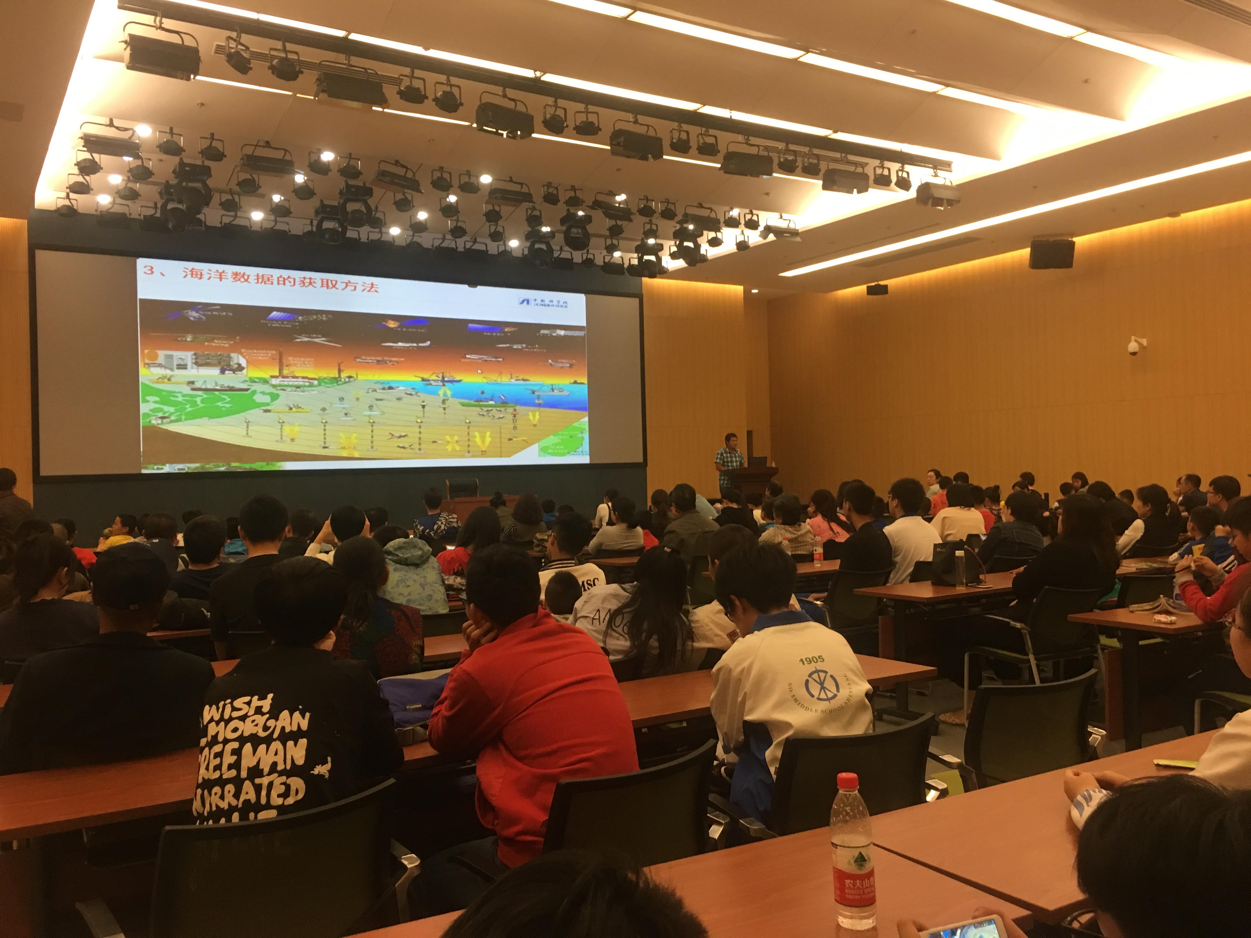 滔天的巨浪、緊張的作業氣氛,甲板上科研人員對事業的執著、成功后的喜悅……在觀看完深淵科考視頻后,現場觀眾自發地報以熱烈的掌聲,向勇敢的“海上科學家”們致敬。報告結束后,金文明還與現場的小科技迷們進行了互動。他根據科普報告內容精心準備了問題,小朋友們踴躍參與并積極回答,現場氣氛熱烈。報告結束后,家長們紛紛表示,通過聆聽一線科研人員普及科學知識,講述自身從事科研工作的經歷,開拓了孩子們的視野,對培養少年兒童的科學意識、創新思維具有良好的促進作用。