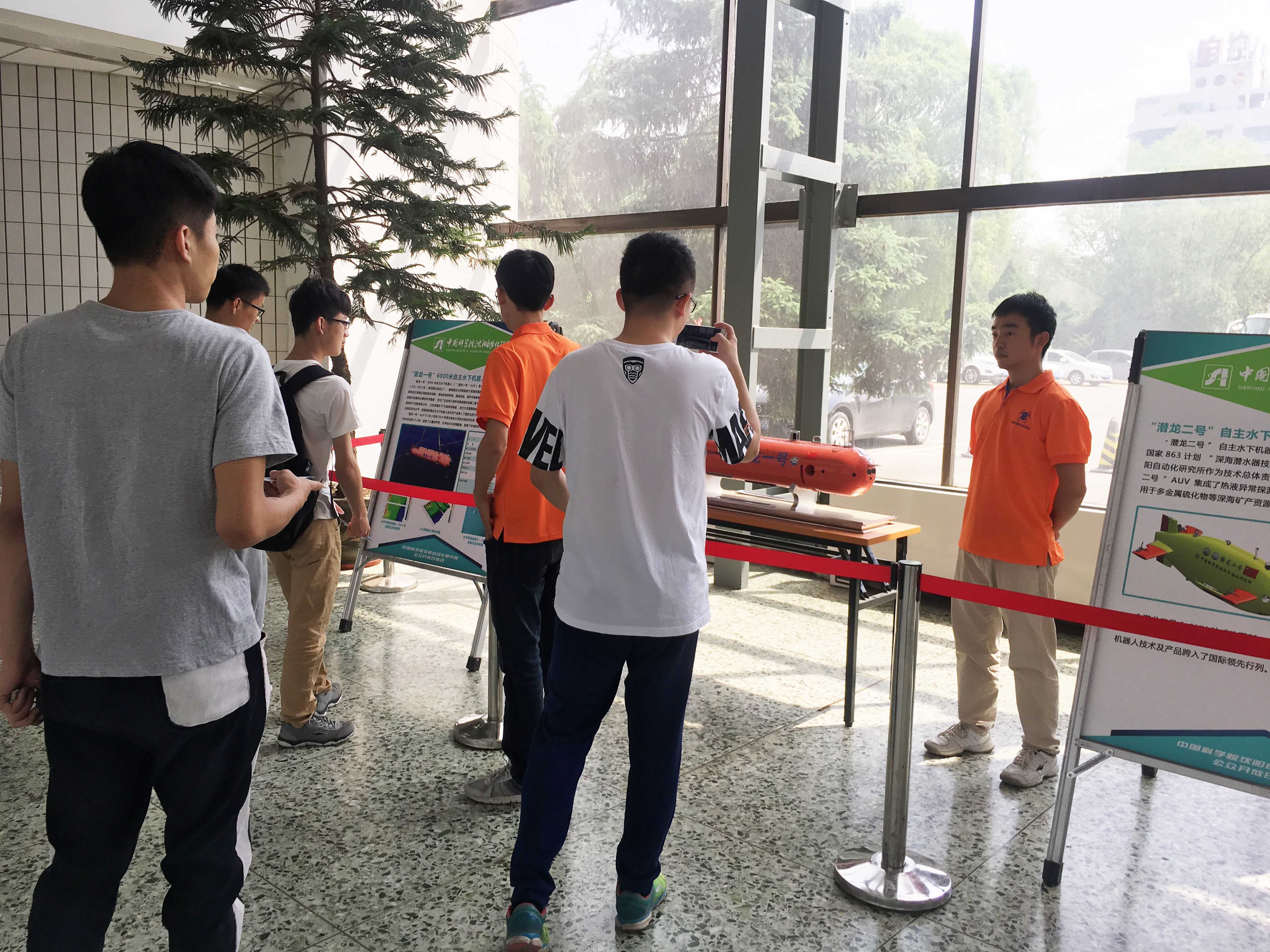 沈陽自動化所機器人、光電信息技術和智能制造三個學科方向代表性成果均在活動中與社會公眾見面。在R樓一樓“機器人展區”,“潛龍一號”AUV、“潛龍二號”AUV、“海斗”號自主水下機器人、“海翼”號水下滑翔機、“龍珠”號ROV和“探索100”小型自主水下機器人的實物或模型亮相;光電信息技術、智能制造技術和微納米機器人等成果通過展板向觀眾進行了展示。在A樓,開放了研究所科技成果展館,并“邀請”到了新松公司“松果”服務機器人與觀眾進行互動。