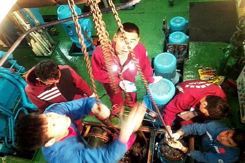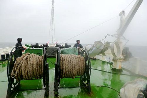本航次海洋調查水域復雜,漁船眾多、船舶通航密度大,并且受到惡劣天氣等因素影響,作業難度較大。航次中,船舶DGPS頻繁出現信號丟失情況,導致電子海圖、AIS、測深儀等設備無法正常使用,后經現場初步排查為DGPS天線故障,在機艙部和甲板部工作人員的通力合作下順利排除故障。另外機艙部為保證航行安全,對滑油分油機及油泵、艙底泵、消防泵、發電副機、舵機油泵、空調風機等重要設備進行了搶修和維護性修理;甲板部在空余時間對船體進行了維護。全體船隊員不畏艱難,堅守崗位,團結協作,客服困難,保證了航次調查任務的順利完成。