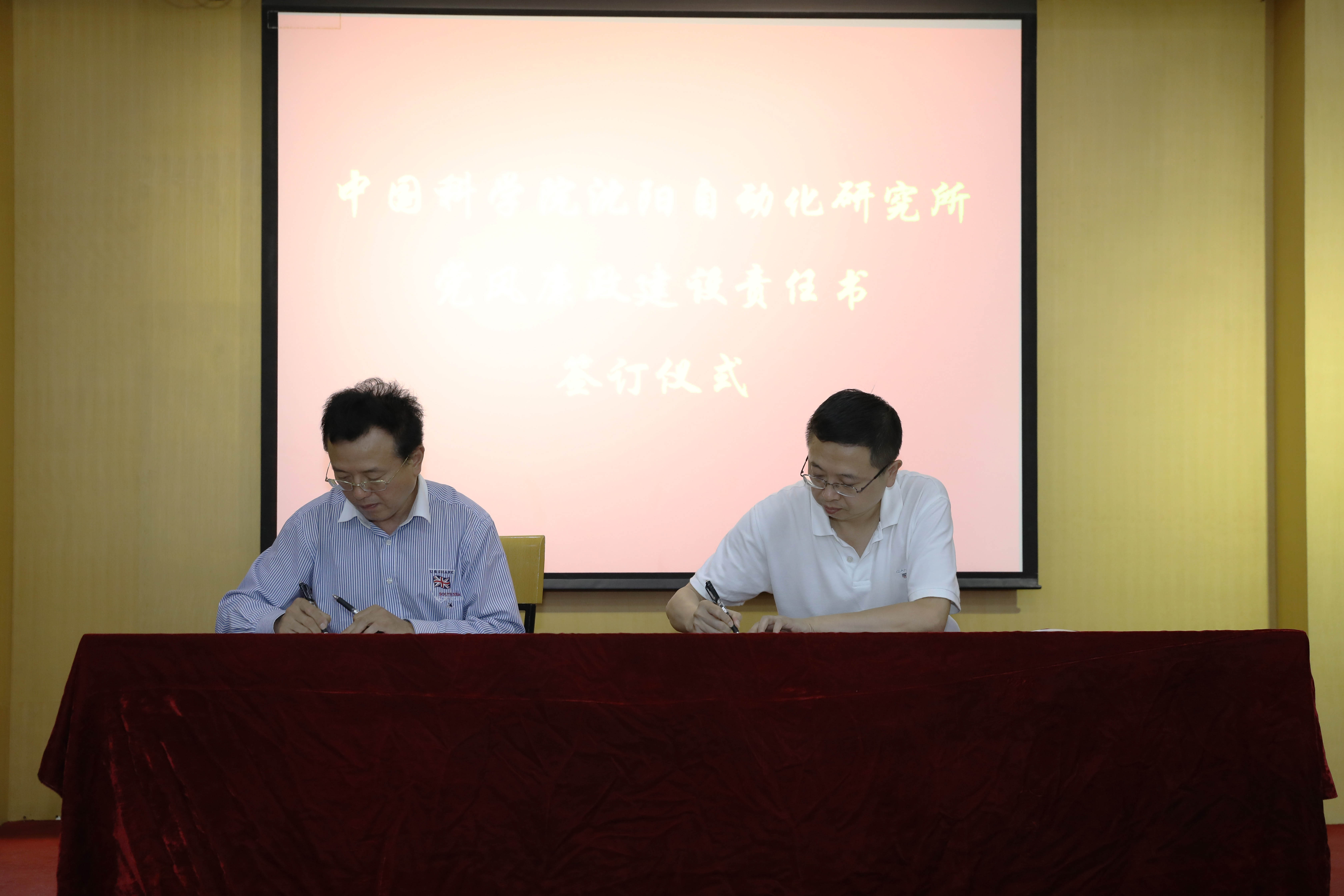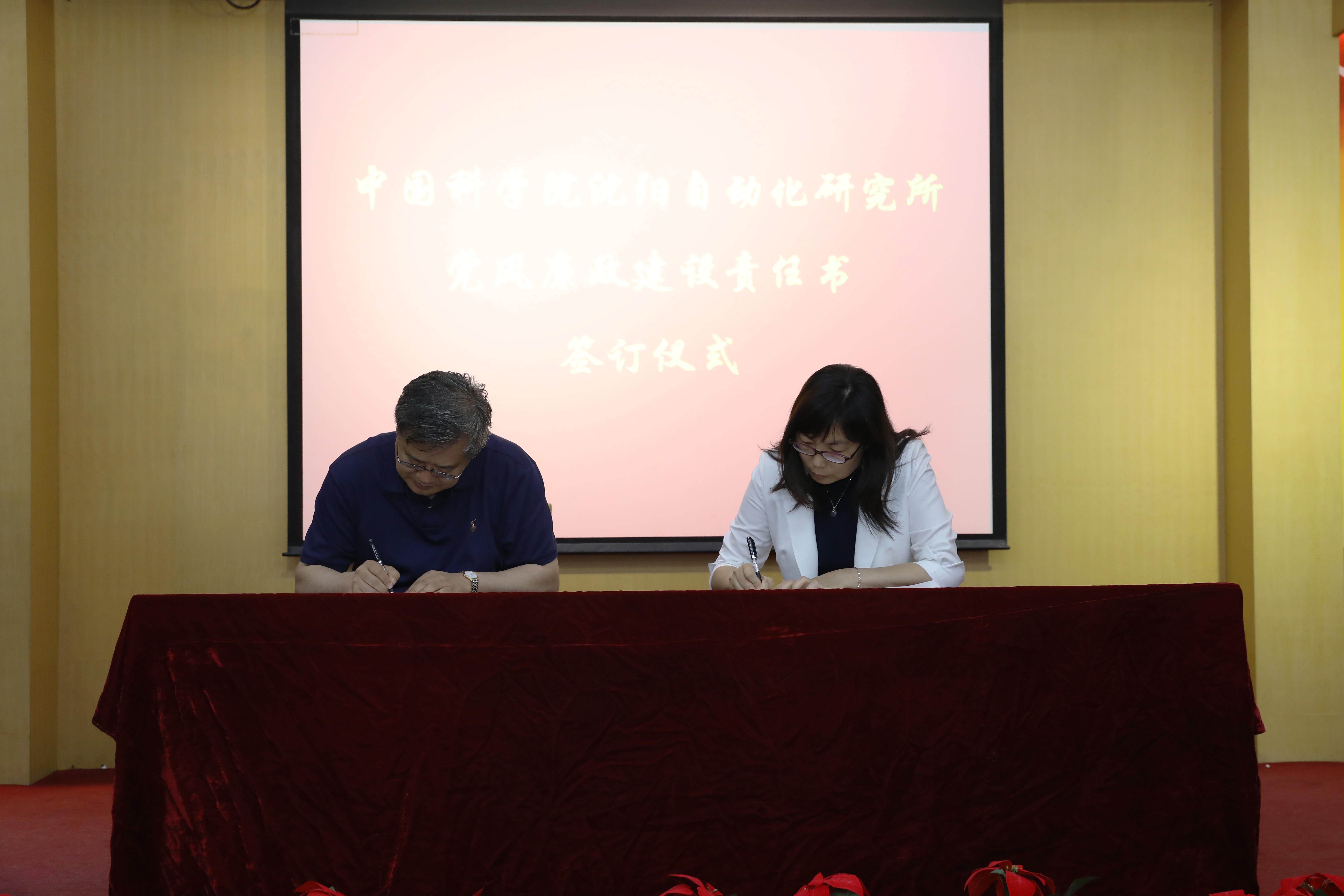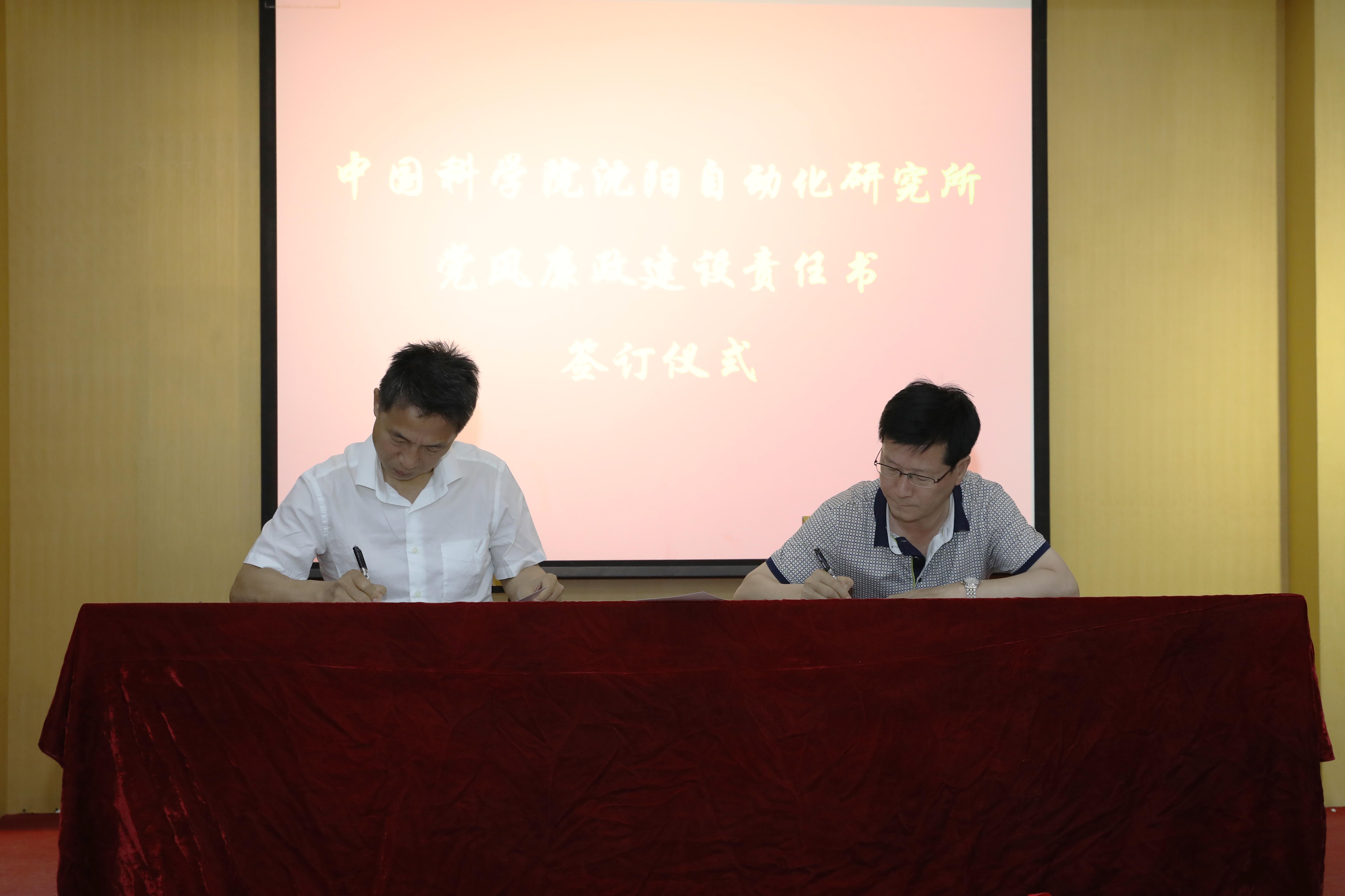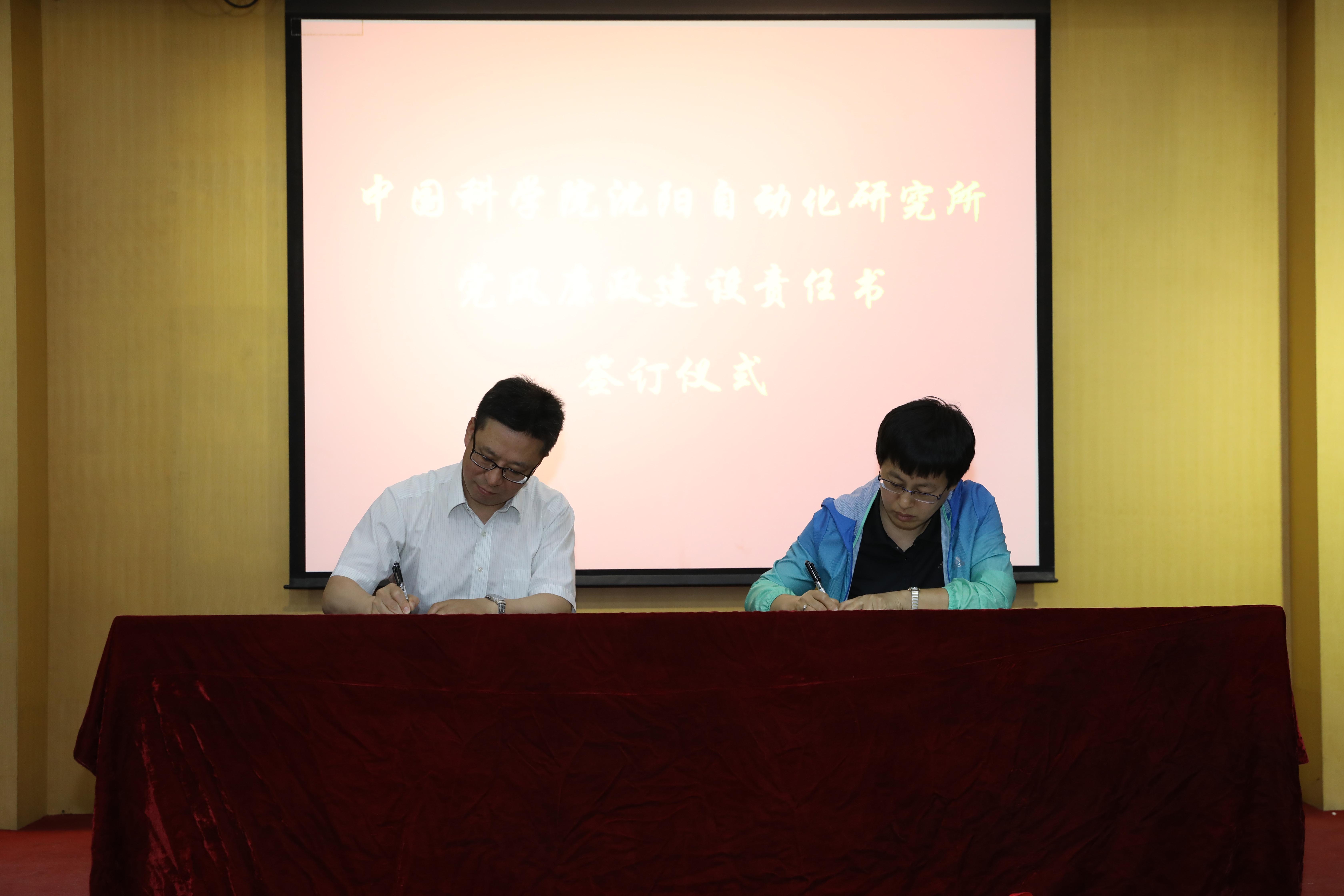 儀式由沈陽自動化所黨委書記兼副所長桑子剛主持。他簡要介紹了此次個性化黨風廉政建設責任書簽訂工作的背景、要求和意義。按照中科院黨組從嚴治黨和反腐倡廉工作的要求,沈陽自動化所黨委在2015年印發了《中國科學院沈陽自動化研究所黨風廉政建設責任制實施細則(暫行)》(以下簡稱《細則》),并組織中層干部、科研團隊負責人簽訂了責任書。2016年,研究所領導班子進行了換屆,中層干部也重新進行了聘任。在對《細則》進行修訂后,為層層推進全面從嚴治黨和反腐倡廉工作的主體責任,所黨委組織所領導班子成員、管理和科研部門負責人、科研團隊負責人、黨組織關系在研究所的投資企業、分支機構負責人、黨支部書記等簽訂責任書。