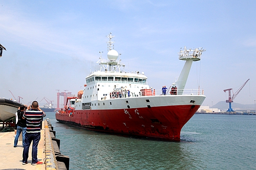 6月9日,“科學(xué)”號(hào)海洋科學(xué)綜合考察船完成“西太平洋中南部水體綜合調(diào)查航次”和“雅浦海山區(qū)綜合地球物理調(diào)查航次”,順利返回青島。海洋研究所副所長(zhǎng)李超倫及相關(guān)部門(mén)負(fù)責(zé)同志到碼頭迎接。