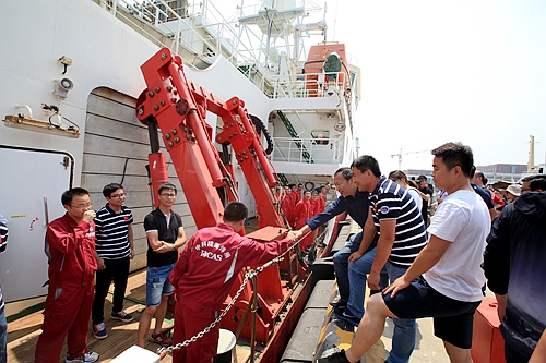 本航次中,“科學(xué)”號(hào)于5月16日至20日靠泊密克羅尼西亞聯(lián)邦波納佩港并順利完成采購(gòu)補(bǔ)給任務(wù),這是“科學(xué)”號(hào)科考船自投入使用以來(lái)首次靠泊外港??扛燮陂g,中國(guó)駐密克羅尼西亞大使李杰及大使館工作人員、援外工作人員代表等到“科學(xué)”號(hào)進(jìn)行了參觀交流。