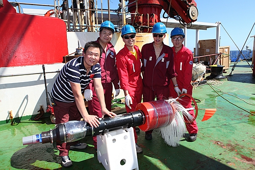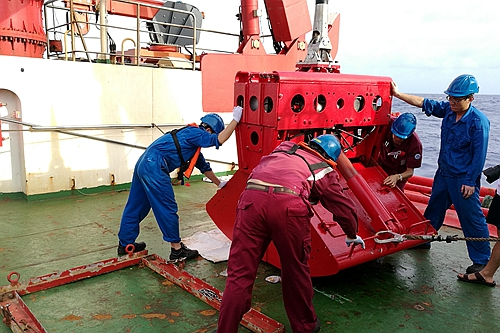 科研人員正在進(jìn)行電視抓斗取樣作業(yè)