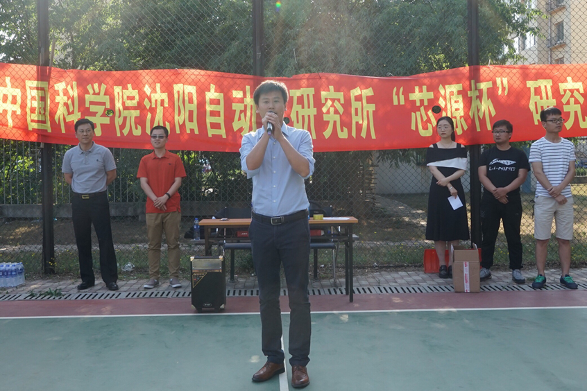 6月7日下午,由沈陽芯源微電子設備有限公司贊助的中國科學院沈陽自動化研究所研究生籃球賽拉開了帷幕。沈陽自動化所人事教育處處長周船、芯源公司總經理助理李守川、各研究室研究生組成的6支球隊以及裁判和工作人員參加了開幕式。
