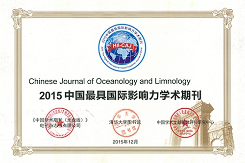 自2008年期刊被SCI收錄以來,編輯部不斷優化編輯出版流程,提高稿件處理效率,拓寬稿源渠道,提升審稿質量,提高期刊影響力。2009年,引進Manuscript Central稿件處理系統,編輯工作與國際接軌;同年與北京精銳理文文化傳播有限公司合作對刊發稿件的英文進行潤色,提高論文可讀性,更符合國際讀者的語言習慣。2010年,引入CrossCheck系統進行內容查重,剔除學術價值不高和內容抄襲嚴重(相似度≧15%)的稿件,優選有創新意義的論文進入外審流程;期刊由季刊改為雙月刊,刊載量增加,發表周期縮短;與世界領先的出版、印刷服務提供商英國查爾斯沃思(Charlesworth)集團合作,提高稿件的編排質量和效率;通過此項國際合作學到了技術,現已能夠獨立進行數字化排版和印前數字化制作,并率先在同行業中使用XML排版技術,可提前6個月電子+紙質版準同步出版。2012年起,期刊長期聘任原法國海洋學研究咨詢所Ian Jenkinson教授擔任客座編輯(對外行使執行主編職責),有效提高了CJOL的學術質量和國際影響力。2014年起實施稿件OnlineFirst出版,電子版優先在Springer發布,目前CJOL已可提前半年印出。自2015年起,CJOL安排4位助理主編強化來稿初審,稿件質量明顯提高,同年開通官方微信,當期文章及時發布,加快了信息流通速度,擴大了期刊傳播范圍。2017年第四期開始,調整期刊欄目設置,對每期刊發稿件進行專業細分,共設置Physics,Geology,Chemistry,Ecology,Biology和Aquaculture and Fisheries六個學科,方便讀者分類閱讀。