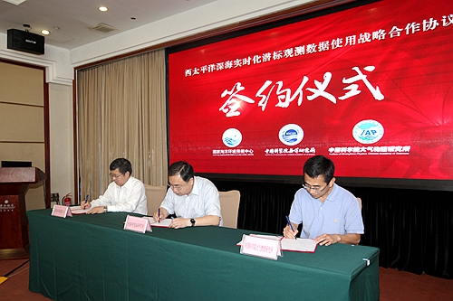 會上,項目組對西太平洋深海潛標數據系統進行了發布。中科院海洋研究所、國家海洋環境預報中心、中科院大氣物理研究所三方簽署了“西太平洋深海實時化潛標觀測數據使用戰略合作協議”,依托各自在相關領域的優勢,對深海實時化觀測數據進行了拓展性應用,將加速我國海洋與氣候預報和環境保障業務系統的建設步伐。