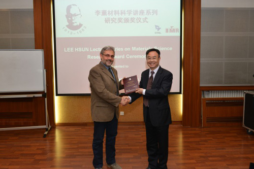 來訪期間,Levente Vitos教授為金屬所科研人員和研究生作了題目為“First principles modeling of high-technology alloys”的李薰獎報告,介紹了復雜成分合金的第一原理研究方法及其在不銹鋼及高熵合金的塑性變形及內稟能壘等方面應用的開拓性研究工作。報告前,楊銳所長代表金屬所為Levente Vitos教授頒發了李薰研究獎獎牌。頒獎儀式和報告會由胡青苗研究員主持。報告得到了金屬所科研人員和研究生的熱烈歡迎。
