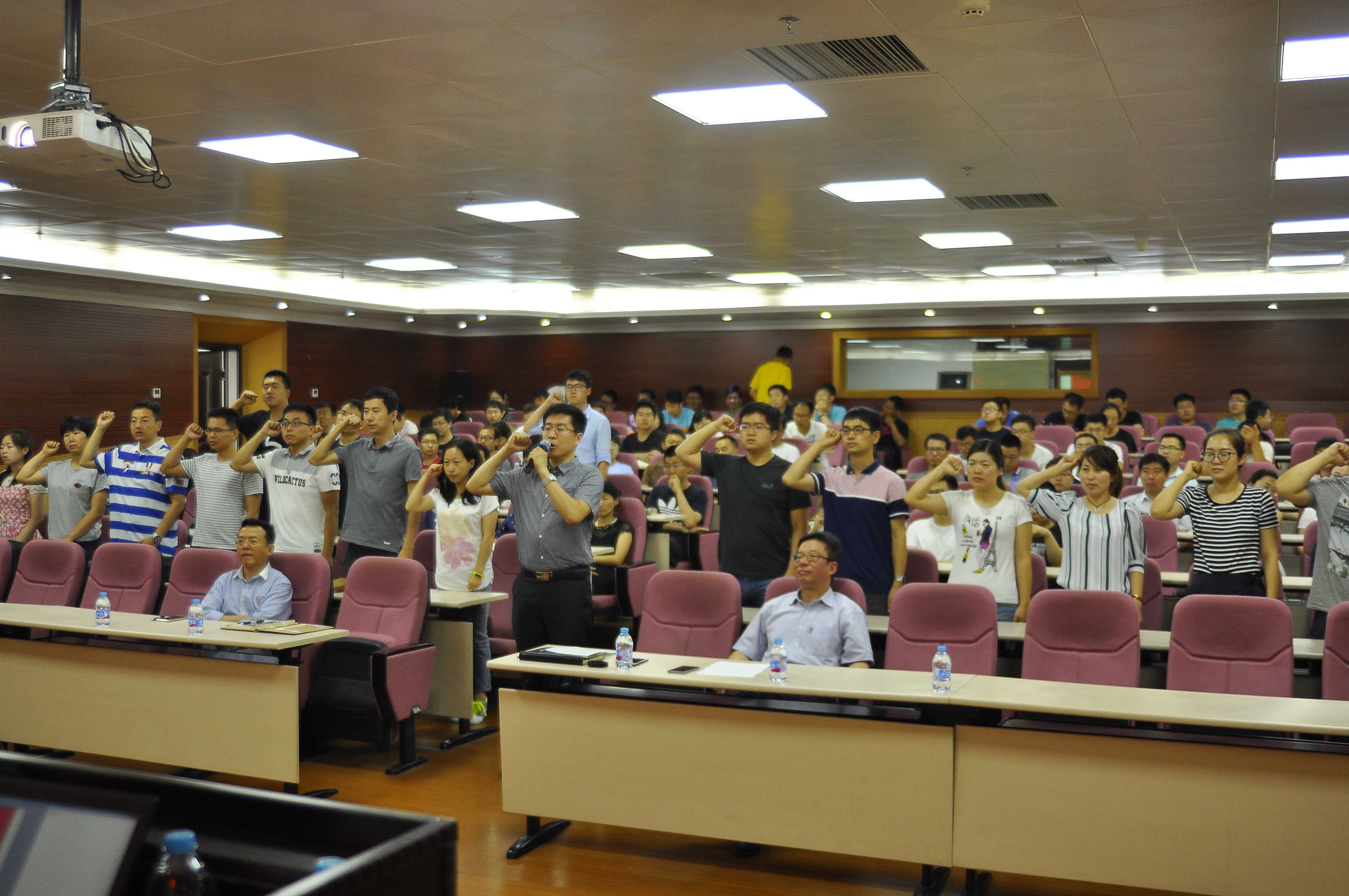 會上,梁波宣讀了2017年度新發(fā)展和轉(zhuǎn)正黨員名單。他鼓勵新發(fā)展和轉(zhuǎn)正黨員在各自崗位努力工作,踐行“四講四有”標(biāo)準(zhǔn),充分發(fā)揮黨員模范帶頭作用,以蔣新松院士為榜樣,追求真理,勇于開拓,肩負(fù)起新時期科研人的使命。隨后,黨辦主任王明輝帶領(lǐng)16名新發(fā)展黨員在黨旗下莊嚴(yán)宣誓。