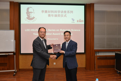 來訪期間,FUKUSHIMA博士為金屬所科研人員和研究生作了題目為“Engineered pore-configuration in cellular ceramics”的李薰獎報告,詳細介紹了超高孔隙率氧化物多孔陶瓷的結構設計、可控制備及力學和隔熱性能。楊銳所長代表金屬所為Manabu FUKUSHIMA博士頒發了李薰青年獎獎牌。頒獎儀式和報告會由王京陽研究員主持。報告得到了金屬所科研人員和研究生的熱烈歡迎。Fukushima博士將與王京陽研究員課題組在耐高溫超級隔熱陶瓷領域深入合作,在平衡超低熱導率、高強度和耐高溫等綜合性能方面獲得突破。