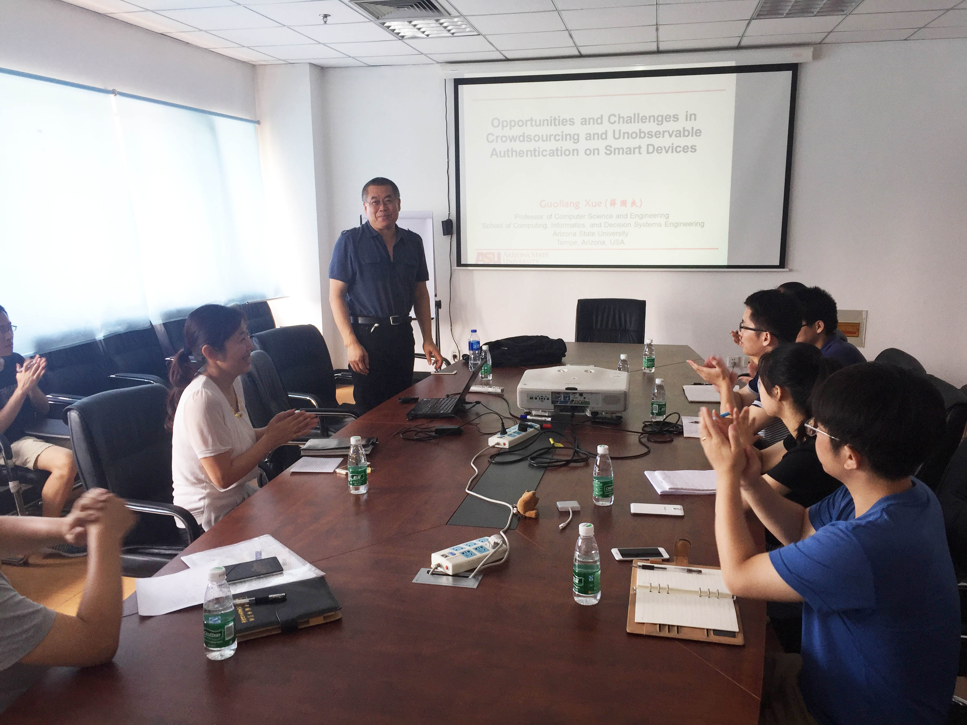 7月6日,應中國科學院沈陽自動化研究所工業控制網絡與系統研究室研究員梁煒的邀請,美國亞利桑那州立大學教授薛國良訪問研究所,并作了題為Opportunities and Challenges in Crowdsourcing and Unobservable User Authentication on Smart Devices學術報告。沈陽自動化所科研人員和研究生參加了報告會。