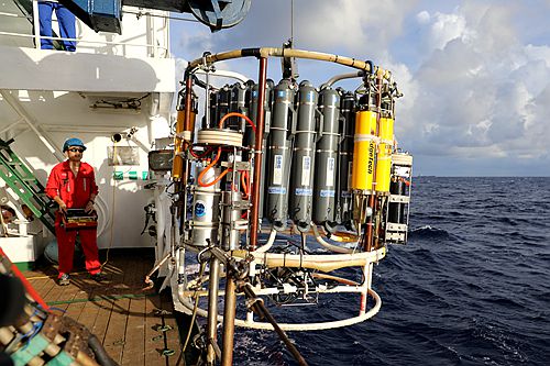 搭載高通量深海海水采樣及分級過濾系統的CTD準備下水