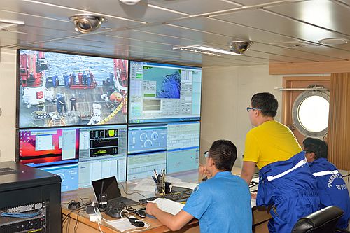 凌晨1點52分,城市里的萬家燈火也早已沉寂的時刻,“科學”號的后甲板卻又一次燈火通明,工程技術部船載實驗室主任孫宇峰帶領值班人員開始了混合潛標布放。“科學”號多次執行潛標布放任務,已形成了一套職責分工明確、配合緊密流暢的作業流程,2點50分主浮球下水,混合潛標順利布放完畢。這就是海洋科考,沒有晝夜之分,隨時準備工作。