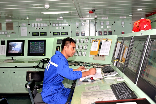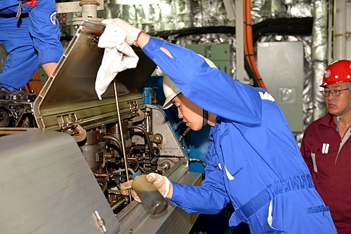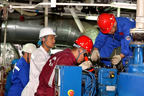 輪機(jī)長(zhǎng)劉長(zhǎng)杰檢查設(shè)備