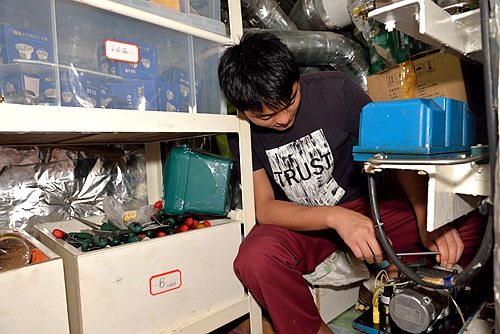 今天,趁著作業(yè)間隙來(lái)到機(jī)艙,我?guī)Т蠹姨揭惶捷啓C(jī)部門的工作日常。“科學(xué)”號(hào)一向以技術(shù)先進(jìn)、生活條件舒適著稱,但在下機(jī)艙前,輪機(jī)長(zhǎng)劉長(zhǎng)杰卻特意拿給我一副防燥耳塞戴好。通過(guò)狹窄陡峭的樓梯,推開(kāi)負(fù)一層的機(jī)艙門,巨大的機(jī)器轟鳴以及混合著各類機(jī)械特有油脂氣味的悶熱空氣迎面而來(lái)。體積龐大的發(fā)電柴油機(jī)等機(jī)械有條不紊地運(yùn)轉(zhuǎn)著,各類不同的氣體液體在各種管徑的復(fù)雜管路中靜靜流淌,機(jī)艙雖然悶熱嘈雜卻井然有序、干凈整潔。輪機(jī)長(zhǎng)劉長(zhǎng)杰、大管輪姜良優(yōu)、機(jī)工長(zhǎng)徐效亮和機(jī)工陳春霖正在對(duì)柴油發(fā)電機(jī)進(jìn)行保養(yǎng),電機(jī)員劉培中和何建成正在對(duì)電路進(jìn)行檢查,他們?cè)诰薮蟮脑肼曋薪涣髦荒芡ㄟ^(guò)互相靠近大聲喊話。機(jī)艙外,三管輪劉明亮正在一個(gè)狹窄空間內(nèi)維修壓載艙遙控蝶閥。輪機(jī)長(zhǎng)劉長(zhǎng)杰說(shuō),這只是輪機(jī)部門日常工作的一個(gè)小縮影,機(jī)艙類似船舶的心臟,輪機(jī)部每天都要對(duì)各種機(jī)電設(shè)備進(jìn)行維護(hù)保養(yǎng),為船舶安全和科考作業(yè)提供可靠的動(dòng)力支撐。