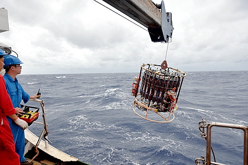 今晚CTD搭載高通量深海海水采樣及分級(jí)過(guò)濾系統(tǒng)順利完成一次作業(yè),臺(tái)風(fēng)“塔拉斯”的余威仍在,出入水時(shí)刻CTD仍然受到一定影響,作業(yè)人員憑借豐富的經(jīng)驗(yàn)和準(zhǔn)確的操控順利完成作業(yè)。隨著臺(tái)風(fēng)“塔拉斯”的影響逐漸減弱,海況也在逐漸好轉(zhuǎn),預(yù)計(jì)明后天將陸續(xù)開(kāi)展AUV和ROV的作業(yè),“科學(xué)”號(hào)又將忙碌起來(lái)。