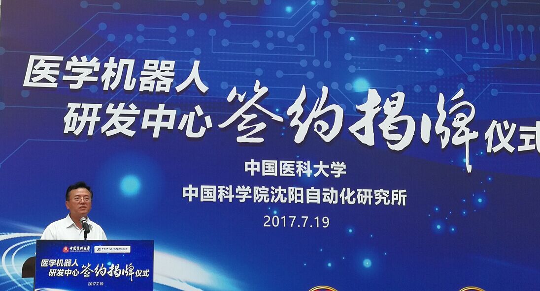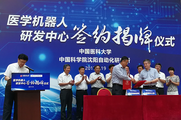 7月19日,中國科學院沈陽自動化研究所、中國醫科大學在沈陽舉行簽約揭牌儀式,雙方合作共建醫學機器人研發中心。