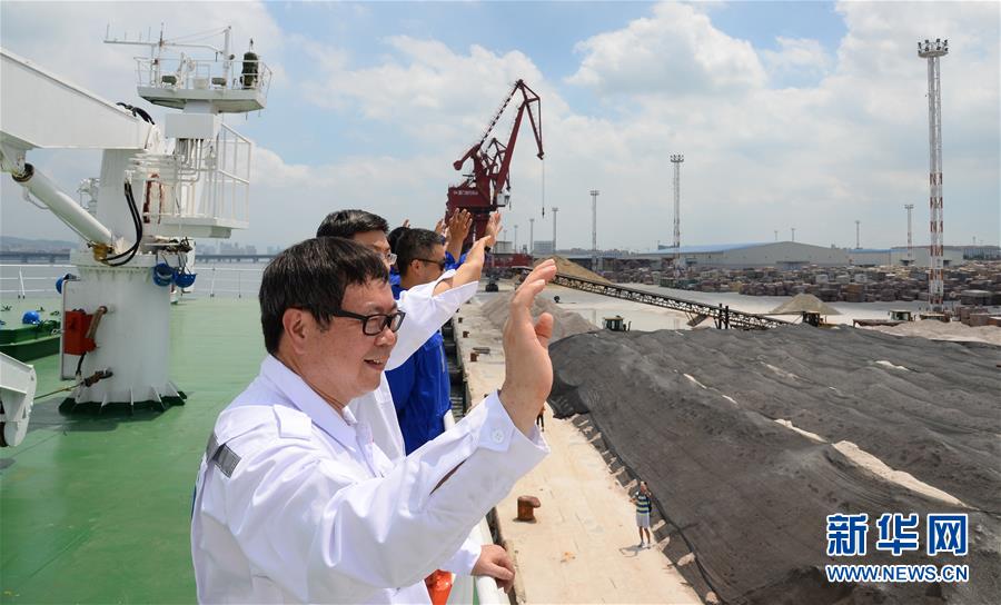 科考隊(duì)員向送行的親屬和同事?lián)]手道別