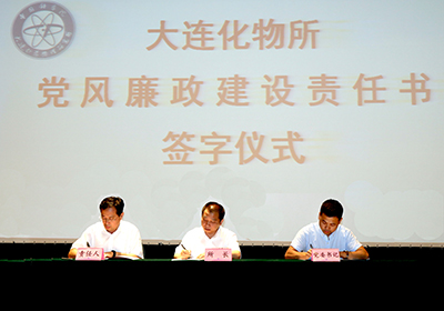 會(huì)議舉行了責(zé)任書(shū)簽訂儀式,紀(jì)委書(shū)記毛志遠(yuǎn)介紹了簽訂責(zé)任書(shū)的背景、要求和意義。簽訂責(zé)任書(shū)是中科院黨組從嚴(yán)治黨和反腐倡廉工作的要求,也是大連化物所自身發(fā)展的內(nèi)在要求。責(zé)任書(shū)是開(kāi)展工作的依據(jù),也是檢查考核履職情況的依據(jù)。各級(jí)責(zé)任人要嚴(yán)格按照“一崗雙責(zé)”要求,認(rèn)真履行責(zé)任書(shū)規(guī)定的相關(guān)責(zé)任。隨后,所長(zhǎng)、黨委書(shū)記與所領(lǐng)導(dǎo)班子其他成員,所領(lǐng)導(dǎo)班子成員與分管的職能部門(mén)負(fù)責(zé)人、研究室(部)負(fù)責(zé)人、黨的關(guān)系在大連化物所的投資企業(yè)總經(jīng)理簽訂了責(zé)任書(shū)。
