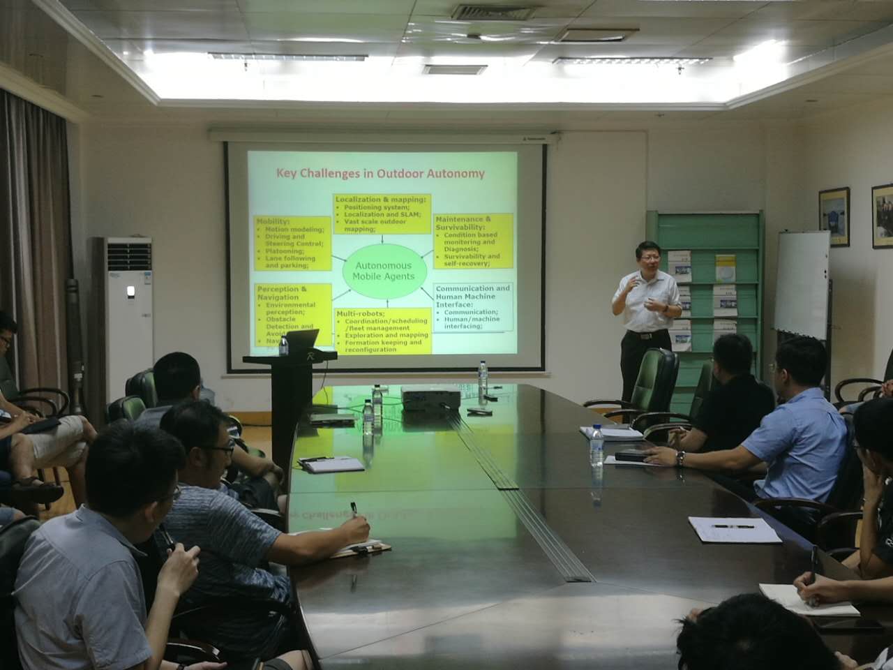 報告會上,王鄲維首先介紹了新加坡南洋理工大學及機器人研究中心。針對機器人3D認知、特征抽取、多機器人的協同合作等方面,他通過視頻、實例等方式向與會人員展示了相關科研成果。