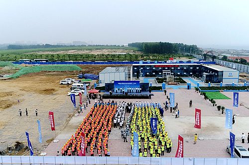 中建八局四公司總經理朱延濤代表施工單位致辭,表示將嚴把工程質量,加快建設進度,努力建設精品工程。