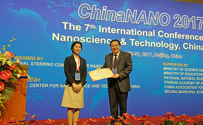 第七屆中國國際納米科學技術大會(ChinaNANO 2017)8月31日在北京落下帷幕,在為期三天的會議中,包括諾貝爾獎獲得者、石墨烯的共同發現者康斯坦丁 諾沃舍洛夫教授在內的七位專家被邀請作大會特邀報告,大連化物所包信和院士應邀作題為“Nano Confinement and Catalytic Conversion of Energy Molecules” 的大會特邀報告,并被授予ChinaNANO Award證書。