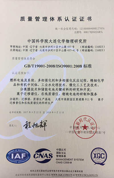 近日,中國科學院大連化學物理研究所收到中國新時代認證中心頒發的新質量管理體系認證證書。