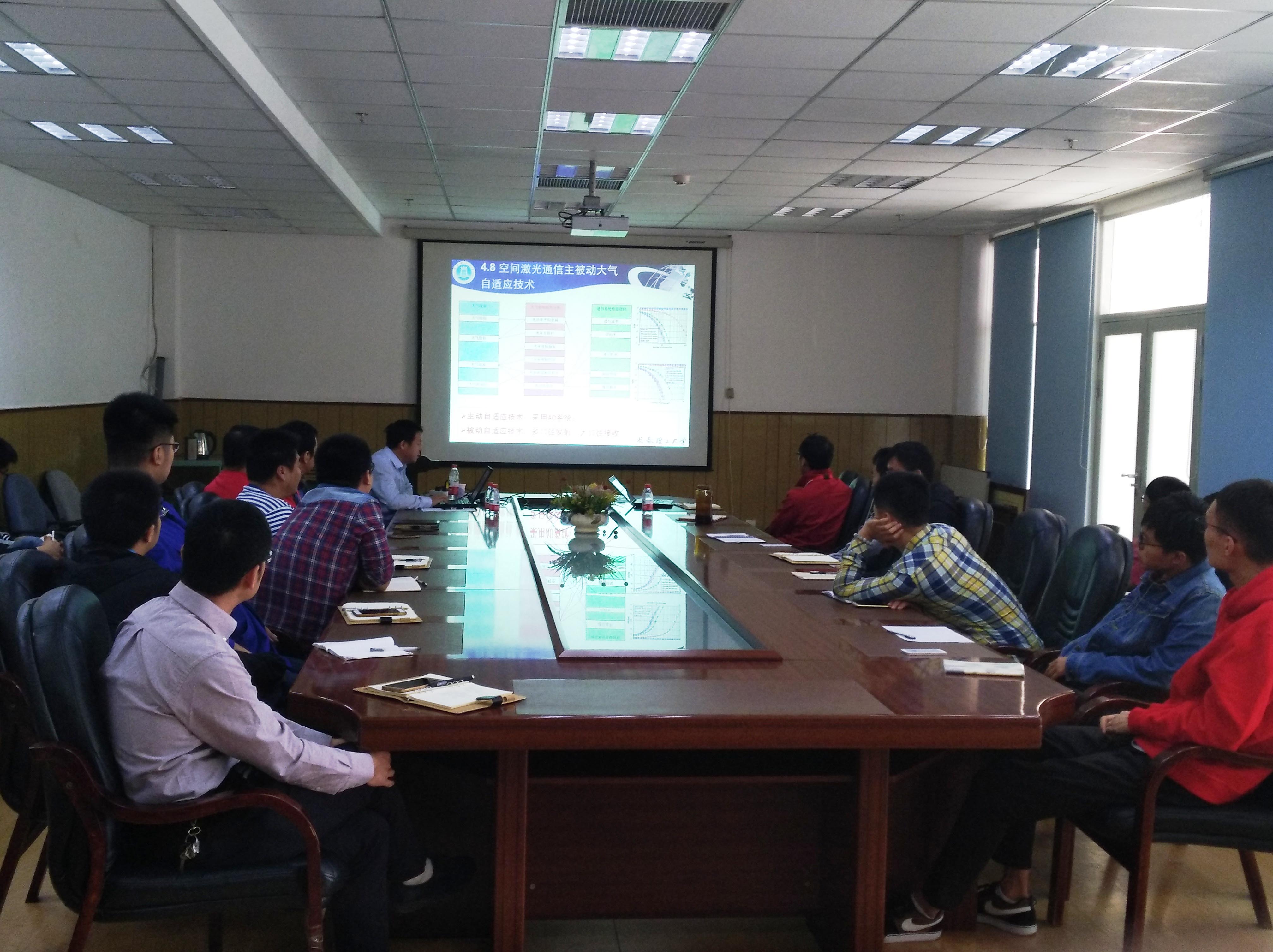 佟首峰在報告中介紹了無線光通信技術(shù)的發(fā)展現(xiàn)狀和研究成果,針對空間光通訊與水下光通信的特點,重點闡述了其在特殊場合(空間或水下)的作用與應(yīng)用;與傳統(tǒng)水下通訊方式對比,無線光通信技術(shù)有著巨大優(yōu)勢,具有廣闊的應(yīng)用前景。報告得到與會科研人員、研究生的積極響應(yīng)和熱烈討論,為后續(xù)的交叉合作和創(chuàng)新研究開拓了思路。