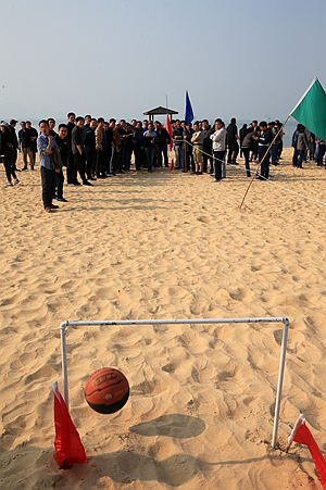 8點30分,比賽正式開始,各個運動項目井然有序地進行,沙灘上立刻熱鬧了起來。60米跑考驗的是爆發(fā)力,60米托球跑要求速度與技巧的完美結(jié)合,二人三足更加注重團隊的默契配合,籃球射門比賽考驗的是足下功夫的力量與精度,鉛球、立定跳遠、跳繩、地滾球等傳統(tǒng)項目競爭激烈。最引人關(guān)注、競爭最激烈的是60米籃球接力比賽,考驗著各代表隊的團隊凝聚力和協(xié)作力,經(jīng)過激烈比拼,分類室、開放室、生態(tài)室分別獲得接力比賽的冠、亞、季軍。經(jīng)過三個多小時緊張激烈的角逐,這場充滿趣味性和增強團隊凝聚力的沙灘運動會圓滿完成各項比賽議程,在大家的歡笑聲中落下帷幕。