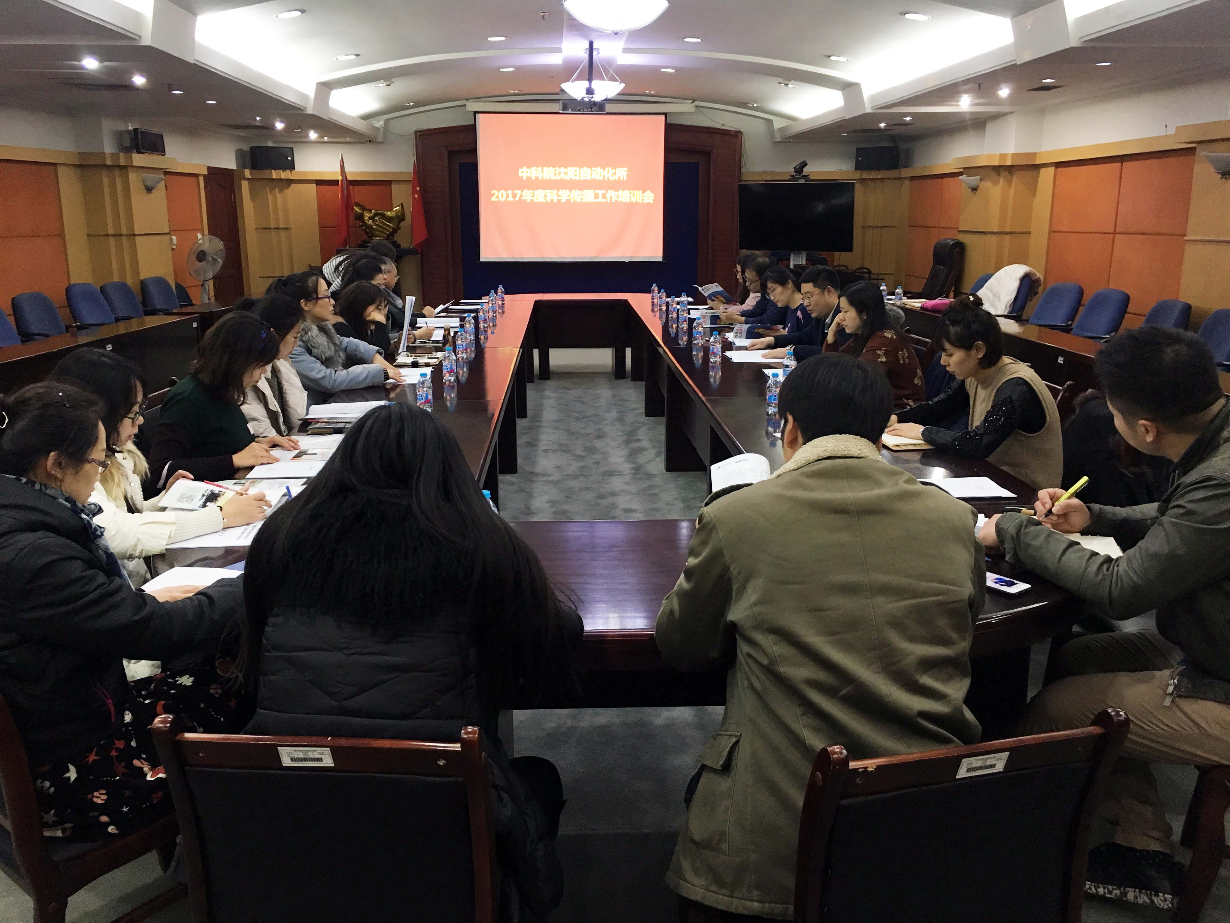 11月16日,中國科學院沈陽自動化研究所2017年度科學傳播工作培訓會在研究所舉行。會議由綜合辦公室組織舉辦,研究室和管理支撐部門科學傳播聯絡員20余人參加了會議。會議針對科學傳播工作業務統籌組織、新聞寫作以及網絡宣傳和黨的宣傳工作開展了培訓,并通報了沈陽自動化所2017年度科學傳播工作開展情況。綜合辦公室副主任劉洋主持會議。