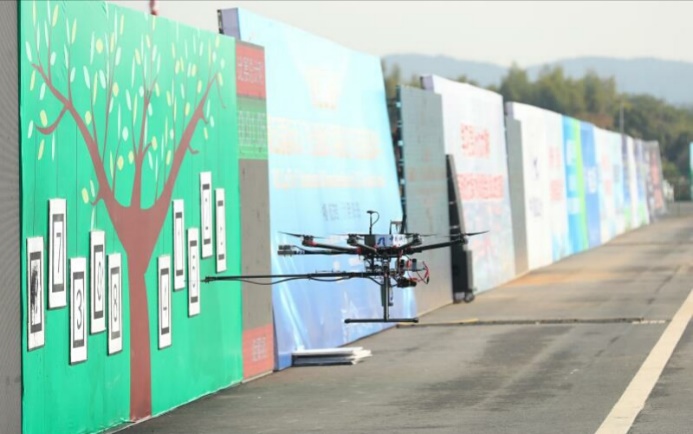 此次比賽主要面向“精準農業”,對虛擬的果樹病蟲害進行視覺識別與農藥噴灑,要求無人機自主起飛并降落,識別顯示屏上代表病蟲害的數字,并對噴繪區域相應數碼框進行精確噴繪,主要考驗無人機自主起降、視覺識別、精確定位、補藥續噴等能力。本屆賽事吸引了來自北京理工大學、南京航空航天大學在內的19支隊伍參加。沈陽自動化所“翔鷹”無人機憑借平穩的起降、精準的定位、穩定的飛行、精確的噴繪以第一名的成績進入決賽,并最終獲得該項目冠軍。