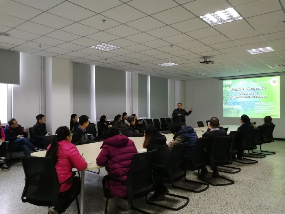 近日,香港浸會大學(xué)材料科學(xué)首席教授 Beng Ong(王明順)博士應(yīng)青島能源所先進有機功能材料團隊負責(zé)人陽仁強研究員邀請到所交流訪問,并做了題為“Printed Electronics - Progress in Materials and Processes”的學(xué)術(shù)報告。報告從印刷電子器件的角度作為切入點,介紹了印刷電子器件在大面積制備柔性器件等方面的優(yōu)勢,能夠與傳統(tǒng)的高性能無機材料在應(yīng)用領(lǐng)域形成很好的互補。并以有機場效應(yīng)晶體管為例,從分子設(shè)計角度來系統(tǒng)闡述共軛高分子材料的構(gòu)效關(guān)系,以及在印刷電子方面有著極高的應(yīng)用前景與價值。報告深入淺出,為相關(guān)領(lǐng)域的研究提供了有益的參考。參會人員就相關(guān)學(xué)術(shù)問題與Ong教授進行了充分的交流和討論。 Ong教授目前是香港浸會大學(xué)材料科學(xué)首席教授,創(chuàng)造研究院副院長,有機電子卓越研究中心主任,曾擔(dān)任美國施樂公司21世紀(jì)材料戰(zhàn)略家、加拿大施樂研究中心地區(qū)經(jīng)理、新加坡材料研究和工程研究院執(zhí)行部主任、新加坡制造技術(shù)研究院院長、新加坡科學(xué)、技術(shù)和研究局項目部總監(jiān)、南洋理工大學(xué)南洋教授。Ong教授發(fā)表了許多有關(guān)先進材料和加工、有機電子學(xué)、納米技術(shù)以及新興電子技術(shù)等方面的研究論文,H因子高達65,同時申請美國專利230多個。基于Ong教授在該領(lǐng)域的突出貢獻,榮獲了“化學(xué)品和材料界商業(yè)領(lǐng)袖科學(xué)美國人50強、查斯特.卡爾遜發(fā)明獎、南洋杰出校友獎、施樂管理和科技卓越獎、美國化學(xué)會創(chuàng)新獎、納米技術(shù)創(chuàng)新獎、納米技術(shù)商業(yè)化獎等諸多榮譽。(文/朱黨強 圖/王婷)