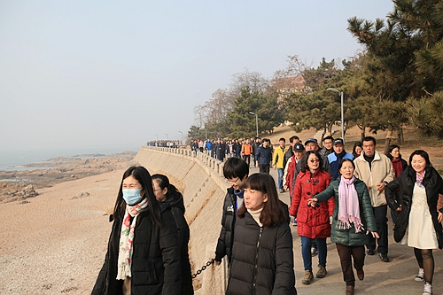 本次健步行活動路線從海洋所南海路園區(qū)西門出發(fā),沿著八大關(guān)海邊木棧道前行至太平角一路和湛山四路交叉口后原路折返,全程5.7公里。西海岸新區(qū)園區(qū)80多名職工自唐島灣南岸二號門出發(fā),沿著美麗的海邊木棧道前行至五號門結(jié)束,全程約4公里。