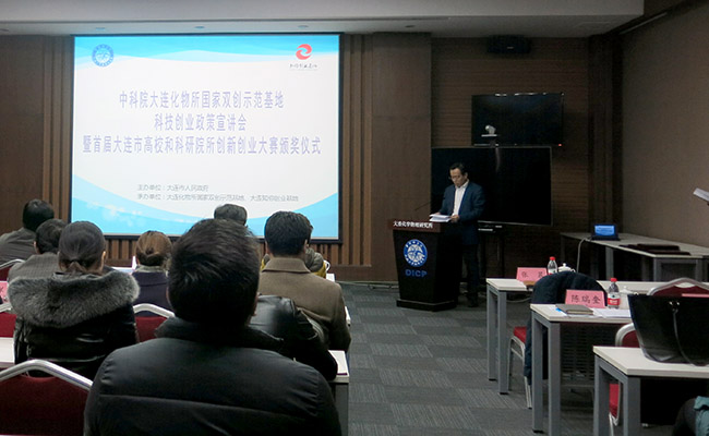 1月9日上午,科技創業政策宣講會暨首屆大連市高校和科研院所創新創業大賽(以下簡稱“雙創大賽”)頒獎儀式在中國科學院大連化學物理研究所國家雙創示范基地舉行。大連市創業促進委員會、發改委、科技局、甘井子區發改委、高新區科技創新局和創業服務中心,大連交通大學,大連大學的相關負責人,以及大連化物所黨委副書記、紀委書記毛志遠,職能和科研部門,中科化物(大連)科技發展有限公司相關人員參加活動。活動由大連化物所知識產權與成果轉化處處長張晨主持。