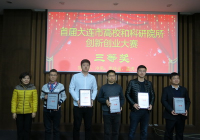 在雙創大賽頒獎儀式上,張晨詳細介紹了雙創大賽取得的成效,隨后大連市創業促進委員會辦公室主任薛雁翔為獲得一等獎的曹海龍頒發獎牌和獎金,大連市發改委高技術產業處處長于耀和甘井子區發改局局長李麗華分別為獲得二、三等獎的選手頒發獎牌和獎金,毛志遠為獲得優秀組織獎的大連交通大學和大連大學相關人員頒發獎牌。