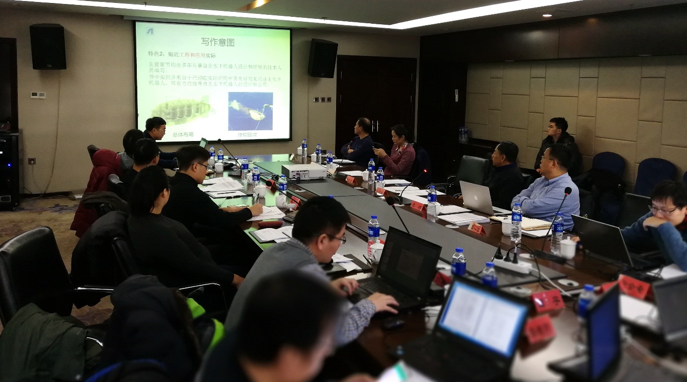 會上,叢書作者圍繞全書概貌、章節設置、專著特色、創新點及寫作心得等方面進行了交流。封錫盛對寫作內容、文章質量、章節篇幅及時間進度等提出了要求。他殷切希望每位作者都能“閃耀智慧之光展現自己的真知灼見,道出歷經晨興夜寐凝聚的豐富經驗”,寫出高質量的與現代科技相契合的經典著作。科學出版社東北分社社長張震對叢書寫作的基本格式要求和注意事項等進行了說明。最后,李碩發表講話,希望大家相互學習、深入交流、取長補短,把我們海洋人寶貴、豐富的經驗通過科學叢書的形式奉獻給廣大讀者。(水下機器人研究室)