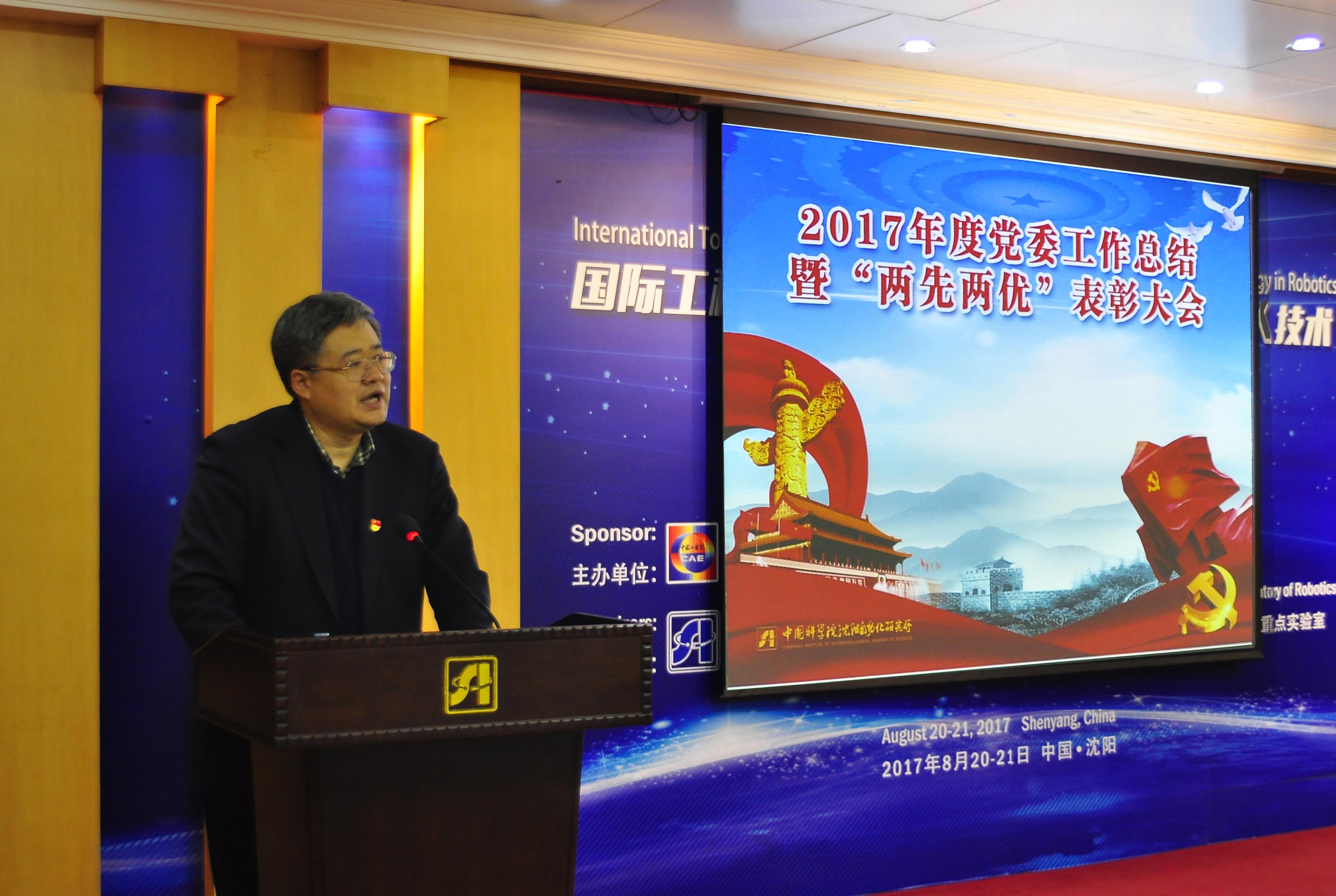 1月25日下午,中國(guó)科學(xué)院沈陽(yáng)自動(dòng)化研究所召開了2017年度黨委工作總結(jié)暨“兩先兩優(yōu)”表彰大會(huì)。黨委書記兼副所長(zhǎng)桑子剛作黨委工作總結(jié)報(bào)告。會(huì)上,對(duì)2017年度“兩先兩優(yōu)”和第八屆政研會(huì)優(yōu)秀論文的獲獎(jiǎng)?wù)哌M(jìn)行了表彰。所長(zhǎng)于海斌、副所長(zhǎng)史澤林、副所長(zhǎng)李碩和王天然院士及各黨支部書記、黨員代表150余人參加會(huì)議。黨委副書記、副所長(zhǎng)孫雷主持會(huì)議。