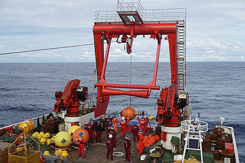 航次首席科學家張林林副研究員介紹,本航次調查共回收潛標16套,布放潛標20套,深海浮標2套,完成了200余個大洋水文綜合站位調查,并進行了多學科聯合觀測。航次期間,考察船還停靠印度尼西亞和菲律賓港口進行補給,與當地科學家和社會團體進行了友好交流,并實施了我國與菲律賓之間首次聯合科學考察,為今后海洋領域的進一步合作奠定了良好基礎。