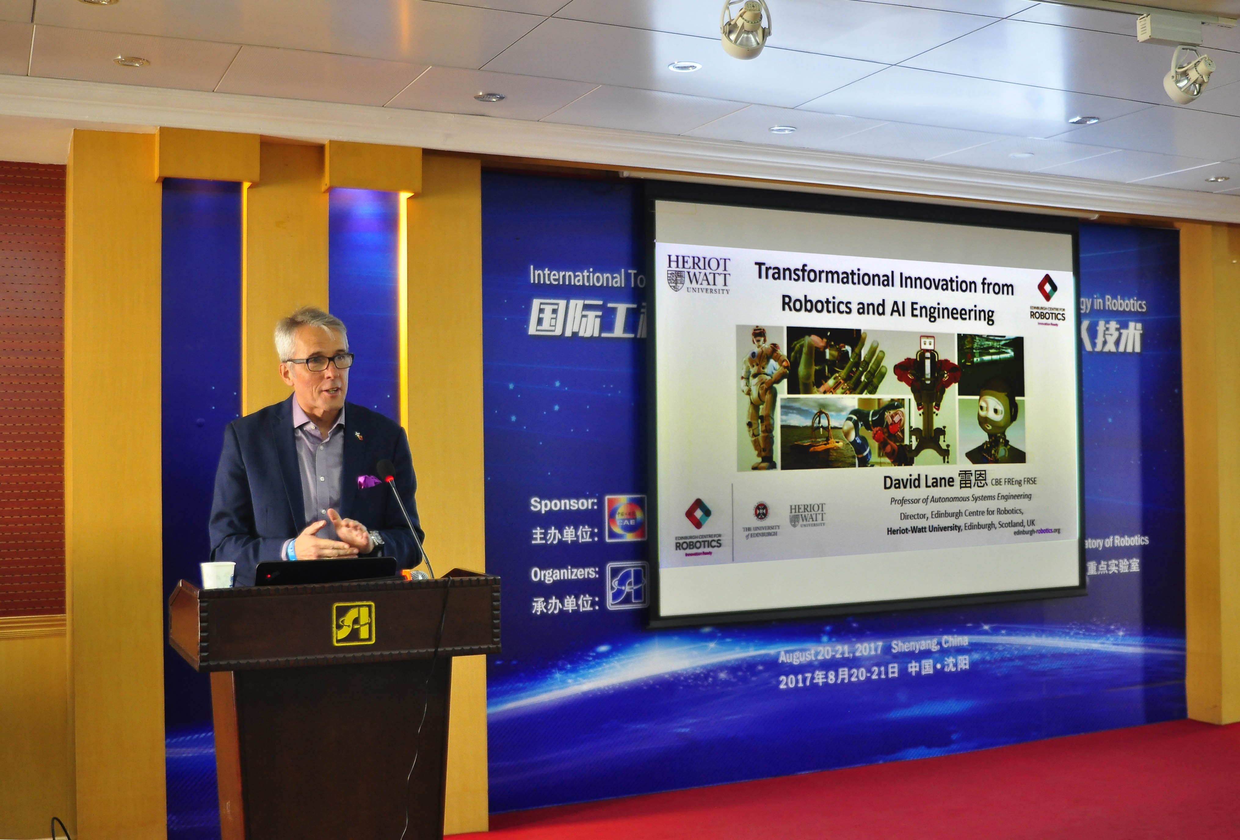 3月10日,應機器人學國家重點實驗室的邀請,英國皇家工程院院士、愛丁堡皇家學會院士、愛丁堡機器人中心主任David M. Lane教授訪問中國科學院沈陽自動化研究所,并作了題為Delivering Transformational Innovation from Robotics and Artificial Intelligence Engineering的學術報告。沈陽自動化所副所長李碩主持學術報告會,封錫盛院士及相關科研人員、研究生等150余人參加報告會。