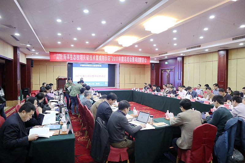 項目負責人楊紅生研究員匯報了項目年度科技進展和工作計劃,詳細介紹了項目背景、技術路線和考核指標,重點匯報了項目2017年度科技研發進展情況、經費使用情況和2018年度科技研發工作計劃。山東藍色海洋科技股份有限公司付建革主任就項目產業示范進展進行了匯報,重點介紹了2017年度的產業示范亮點成果及知識產權獲得情況,從產業化示范角度匯報了項目的年度實施成效。中科院科技促進發展局韓永濱副處長及技術委員會專家對項目存在的問題及措施建議進行了深入研討,明確了項目今后的研究方向和重點。