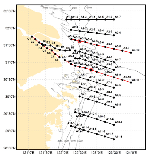 “長江口科學(xué)考察實(shí)驗(yàn)研究”春季共享航次站位圖