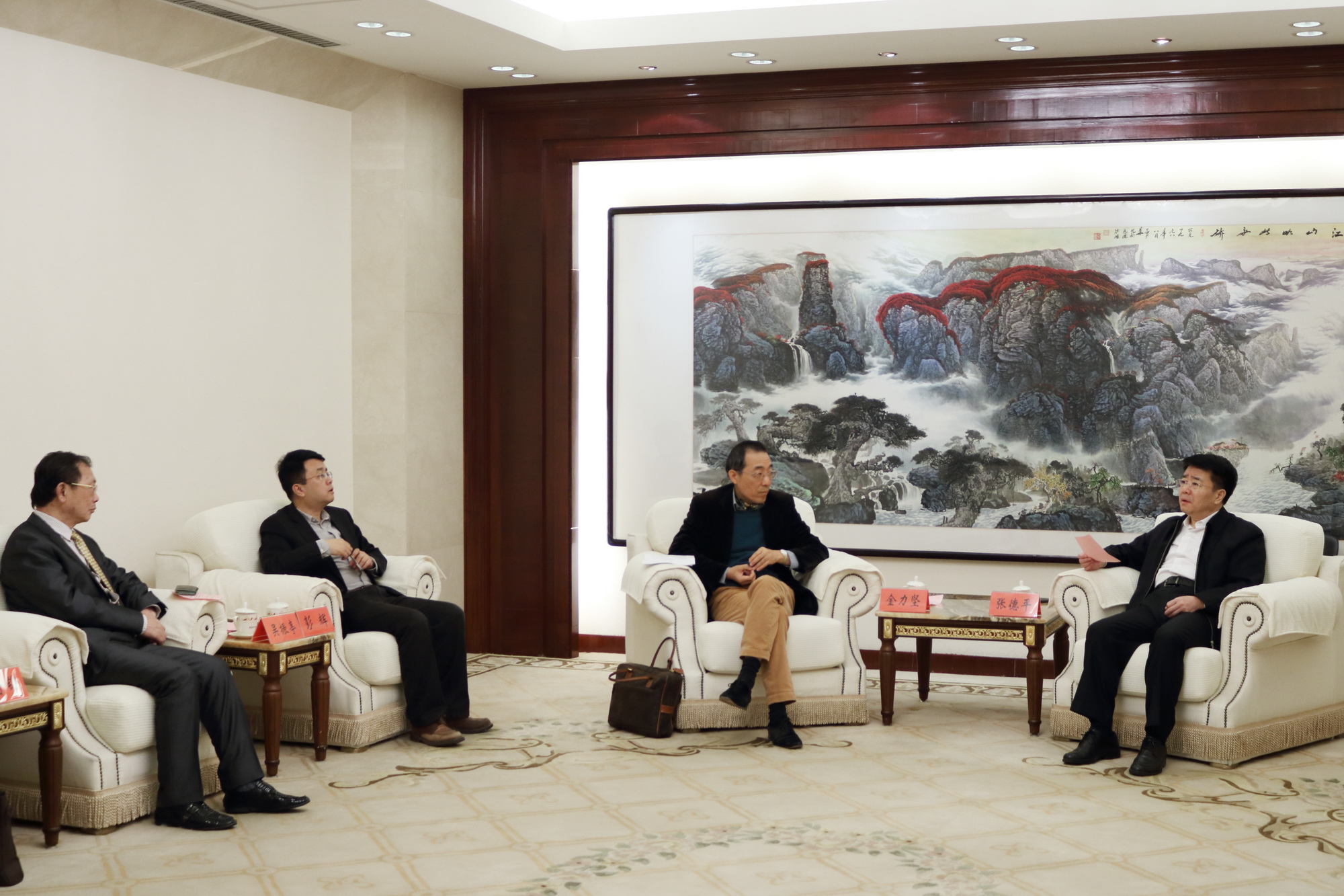 3月28日上午,青島市副市長張德平在市政府1273會議室會見世界牙醫聯盟理事、全球牙周健康專項工作組主席、香港大學牙醫學院教授金力堅、中國科學院大學創新創業學院副主任賀子錦、青島能源所黨委書記、副所長彭輝一行。與會人員就在青島和香港兩地共建“精準口腔健康創新研究與轉化中心”一事進行友好會談。