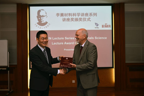 張健副所長代表金屬所為Uwe Glatzel教授頒發(fā)了李薰講座獎(jiǎng)獎(jiǎng)牌。訪問期間,Uwe Glatzel教授為我所科研人員和研究生作了題目為“Stress Contributions in Nickel-Base Superalloys”和“High Entropy Alloys - Materials for High Temperature Applications? and Introduction to the New German Priority Programme ‘Compositionally Complex Alloys - High Entropy Alloys (CCA - HEA)’”的學(xué)術(shù)報(bào)告。