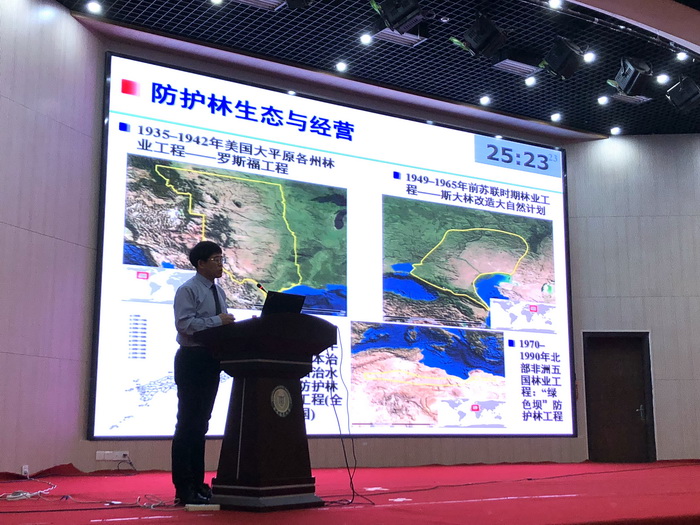 5月6日上午,朱教君研究員在大會上作題為“防護林生態與經營”的特邀報告,從防護林生態與經營概述、防護成熟與階段定向經營、結構量化與配置優化調控、衰退及其防治與更新、防護林生態研究展望五個方面全面展示了自我國開始建設防護林以來,中國科學院沈陽應用生態研究所在防護林生態與經營研究領域取得的階段性成果。隨后,朱教君研究員為大會優秀墻報獎獲得者頒獎。