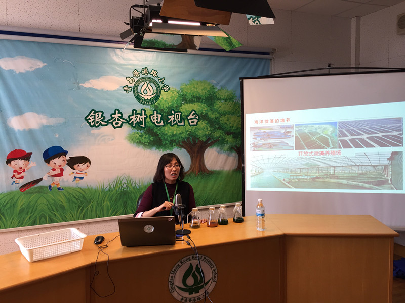 在香港路小學銀杏樹電視臺,研究所巡講小組成員汪輝副研究員做了以“神奇的海洋微藻”為主題的科普報告。報告以貼近小學生熟知的海洋為切入點,從海洋資源和海洋生態系統的角度,提出海洋微藻對整個海洋生物鏈和環境的重要性;應用大量實例并緊密結合日常生活,以目前應用比較廣泛的幾種典型微藻為例,深入淺出的講解科學家如何認識、培養、開發不同種類的微藻以及其在能源、環境、食品、健康等領域不可替代的作用。汪輝還配以具體微藻實物展示以及視頻動畫的方式,生動而有趣地向同學們展示了海洋微藻的多種形態、以及微藻在改善環境與提高人民生活質量中大放異彩、發揮不可替代作用的關鍵原因,進一步加深了同學們對海洋微藻的認知和了解。