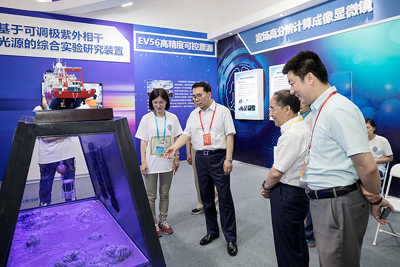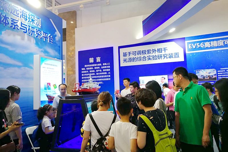 5月19日上午,由科技部和北京市政府共同主辦的“2018年全國科技周暨北京科技周活動主場”在中國人民革命軍事博物館開幕。中央宣傳部部長黃坤明,北京市委書記蔡奇,中國科學院院長、黨組書記白春禮等出席開幕式并參觀。海洋所“深遠海探測體系與研究平臺”及“海洋生態牧場”系列成果受邀在科技創新成果展區展出,并受到高度關注。